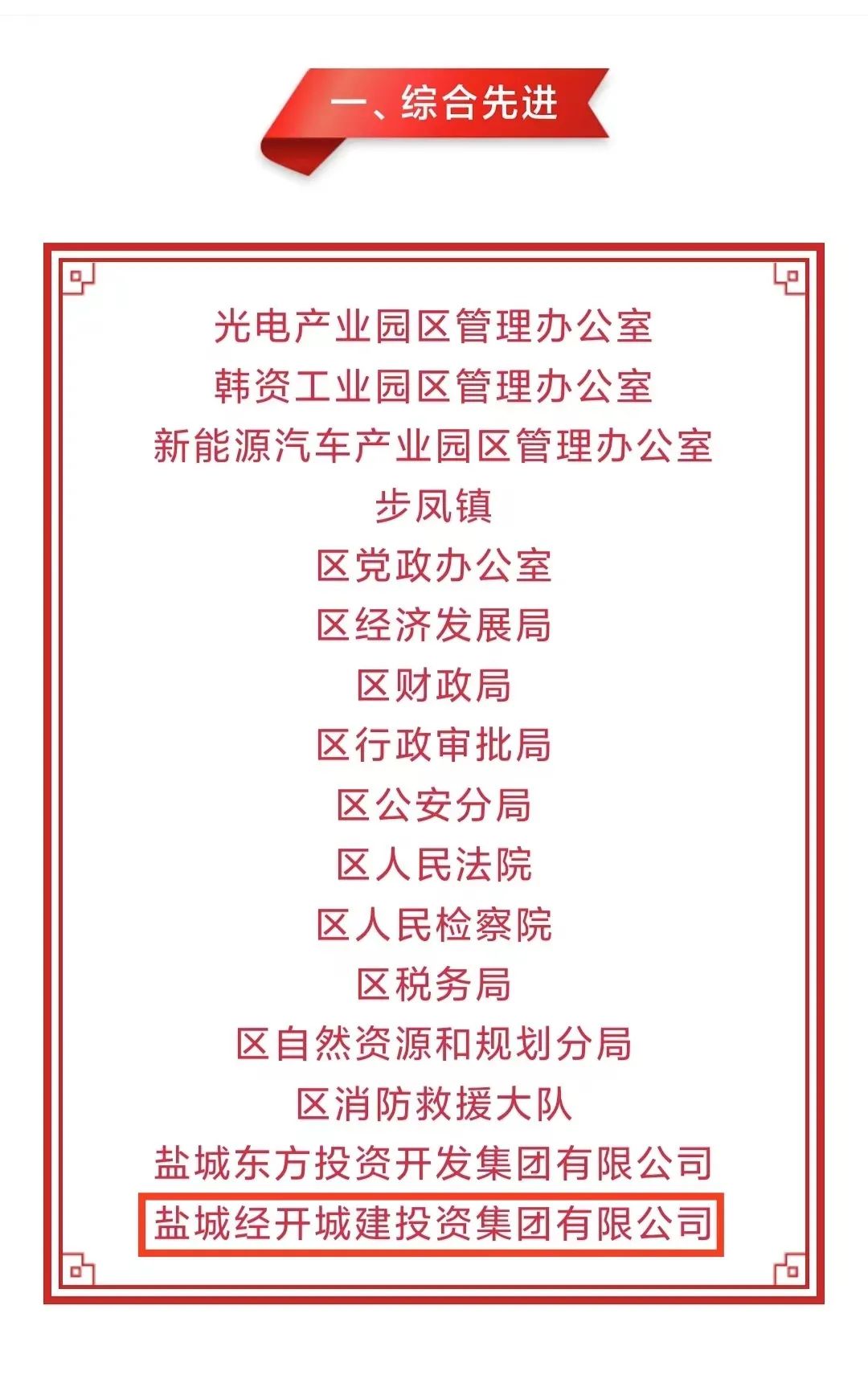 此次榮譽(yù)的獲得是區(qū)黨工委、管委會(huì)對(duì)集團(tuán)2022年度工作的充分肯定。近年來,鹽城經(jīng)開城投集團(tuán)全面落實(shí)區(qū)黨工委、管委會(huì)的各項(xiàng)決策部署,牢牢把握國有企業(yè)定位,務(wù)實(shí)重干,主動(dòng)作為,推動(dòng)項(xiàng)目建設(shè)提速加碼、經(jīng)營效益更加優(yōu)質(zhì)、人才隊(duì)伍不斷強(qiáng)化、黨的建設(shè)持續(xù)提升,各項(xiàng)工作取得新成效。