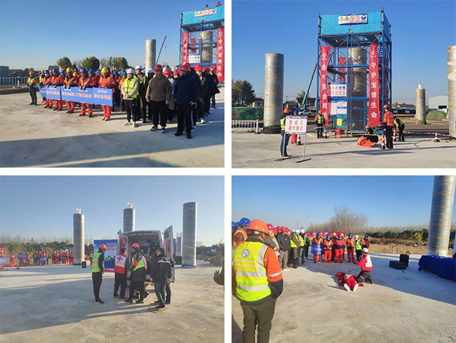 為持續(xù)樹牢安全紅線意識(shí),普及安全生產(chǎn)知識(shí),提升施工現(xiàn)場(chǎng)管理和一線作業(yè)人員安全素養(yǎng)和防護(hù)意識(shí),有效保障施工領(lǐng)域安全生產(chǎn)形勢(shì)平穩(wěn),11月28日下午,鹽城經(jīng)開城投集團(tuán)在鹽洛高速步鳳互通項(xiàng)目現(xiàn)場(chǎng)開展高處墜落事故應(yīng)急救援演練活動(dòng)。集團(tuán)工程條線全體人員及各在建項(xiàng)目項(xiàng)目經(jīng)理、總監(jiān)參加活動(dòng)。