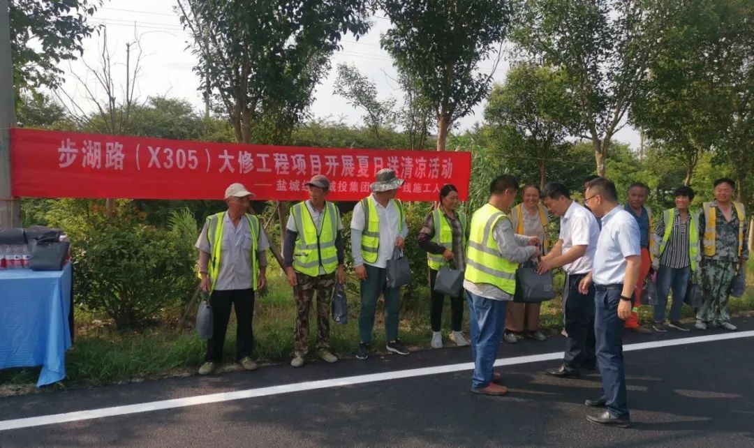 今夏氣溫節(jié)節(jié)攀升,暑氣日盛。為切實做好夏季防暑降溫工作,保障一線施工人員健康安全,8月1日上午,鹽城經(jīng)開城投集團副總經(jīng)理張志軍帶隊,依次前往鹽城經(jīng)開區(qū)環(huán)衛(wèi)基礎(chǔ)設(shè)施、2024年步湖路大修、2024年農(nóng)村道路臨水路段防護、2024年口袋公園等項目現(xiàn)場,開展“夏日送清涼”活動,慰問一線施工人員。