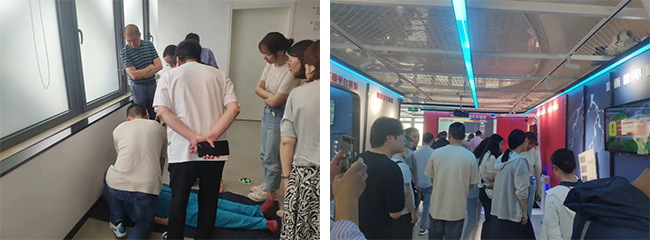 全體人員先后參觀體驗(yàn)了氣象預(yù)警體驗(yàn)、VR火災(zāi)隱患排查與火場(chǎng)逃生、全景三維模擬滅火體驗(yàn)、觸電體驗(yàn)等專題區(qū),學(xué)習(xí)了氣象災(zāi)害、雷雨避險(xiǎn)、火災(zāi)逃生與自救逃生等相關(guān)知識(shí),并體驗(yàn)了火災(zāi)逃生、地震避險(xiǎn)等模擬演練,綜合視覺、聽覺、觸覺等多方位感受,沉浸式體驗(yàn)各種災(zāi)害所帶來(lái)的破壞力。在心肺復(fù)蘇與急救專題區(qū),工作人員使用場(chǎng)館道具,為大家普及心肺復(fù)蘇術(shù),以防不時(shí)之需。此次參觀體驗(yàn),提高了全體員工防災(zāi)減災(zāi)意識(shí),進(jìn)一步掌握了避災(zāi)、自救、互救技能,有效提升了應(yīng)對(duì)處置自然災(zāi)害、突發(fā)事件的能力和水平。